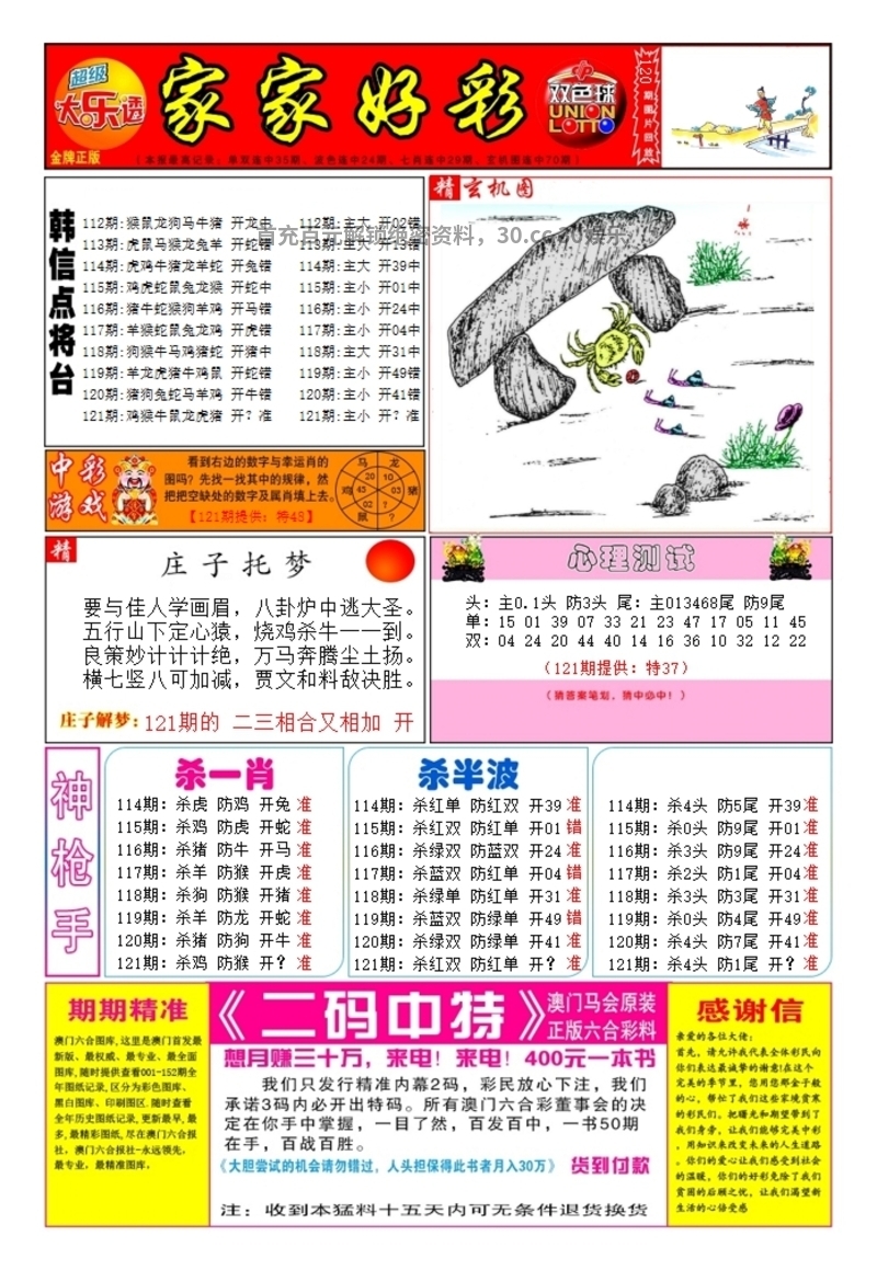 | 121期:六肖中特【兔羊牛鼠马龙】开:兔15准 |